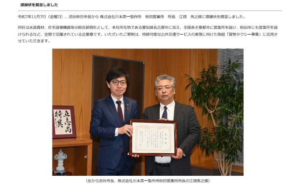 - 秋田市より表彰されました
